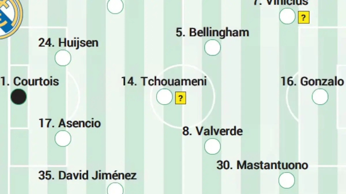 中场: 巴尔韦德、楚阿梅尼、贝林厄姆