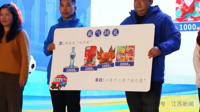 图片来源:吴江发布苏州也不甘示弱——早在永州夺冠时,就是首个为“十五弟”点亮祝贺灯牌的城市。这次在吴江盛家厍的球迷见面会上,两地球迷互换签名球衣与冠军帽,一句“欢迎来苏州过年”,道尽了江南的温婉与热情。除此之外,苏州本地企业代表还向永州嘉宾回赠了寓意“一缕红绸系深情”的红围巾与文创产品,苏州市民更是将现场的永州特产抢购一空。