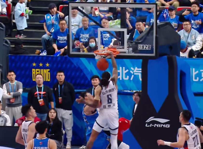 第四节,珀赛尔两分打进,周琦两罚一中,两队67平。珀赛尔隔扣周琦后对着周琦怒吼,周琦非常愤怒,两人都被吹技术犯规。北京连续进攻不进,陈林坚反击打进,分差4分。暂停后,杰曼上篮打进,珀赛尔中投得手,谢智杰打进,杰曼上篮得手,谢智杰和陈林坚连中三分,山东男篮81比71打停对手。