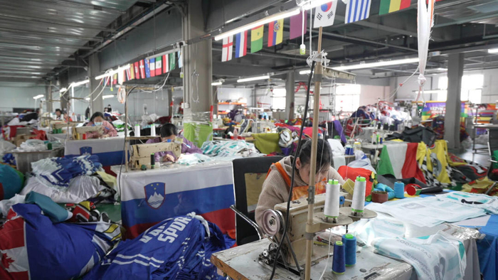 位于青岛市即墨区段泊岚镇的青岛万德隆,虽然只是一家扎根小镇的企业,却是中国北方最大的旗帜“超级工厂”。每年,全球超过一半的赛事旗帜从这里出发,飘扬到世界各地。从德甲、英超到NBA等美国四大联赛,从商业广告到球迷手中的巴掌旗,只要叫得上名字的国际大赛,场外飘扬的旗帜,很可能就出自青岛万德隆的工人之手。