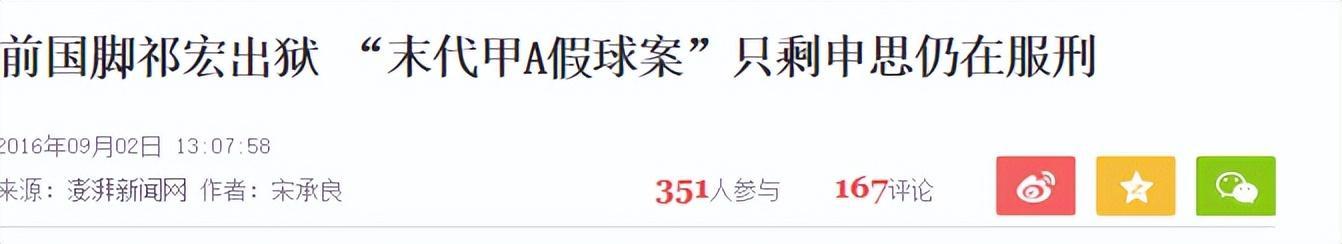 参考资料:澎湃新闻网《前国脚祁宏出狱 “末代甲A假球案”只剩申思仍在服刑》