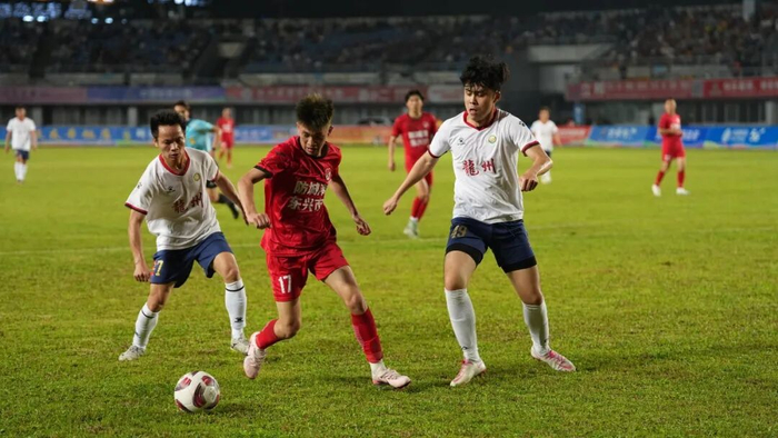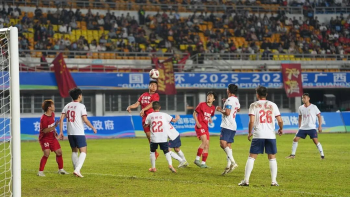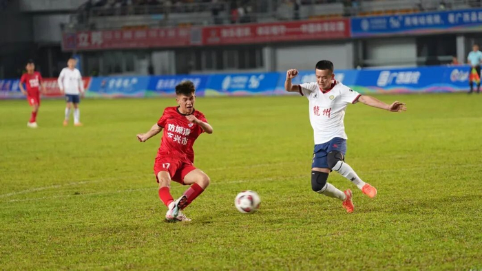 3月15日晚,“国控杯”2025—2026年广西县级足球超级联赛桂南赛区,防城港市东兴市队迎战崇左市龙州县队,以3∶0的比分赢得主场胜利。