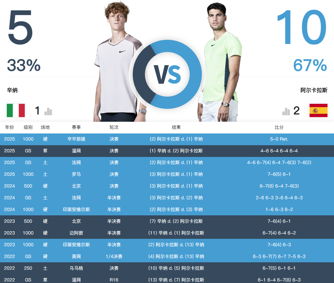 辛纳vs阿尔卡拉斯